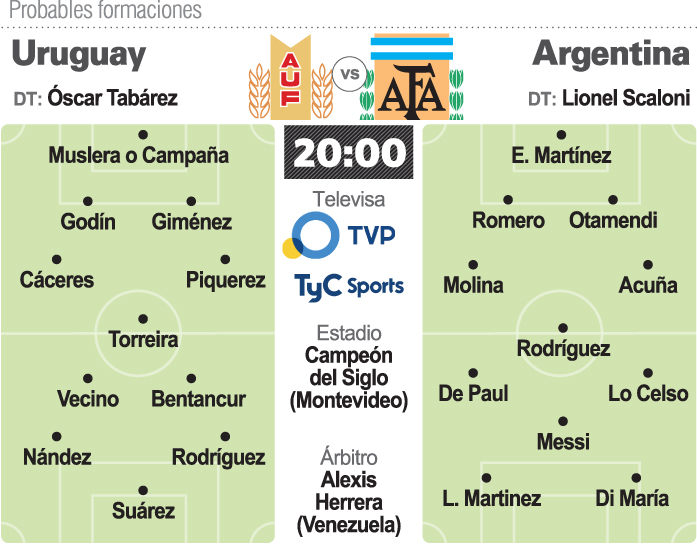 La previa del cruce rioplatense concentró el foco de interés en relación a la presencia del capitán argentino, Lionel Messi, al que el DT Lionel Scaloni parece dispuesto a utilizar desde el inicio pese a las molestias físicas que le impidieron jugar los últimos partidos con el París Saint Germain.