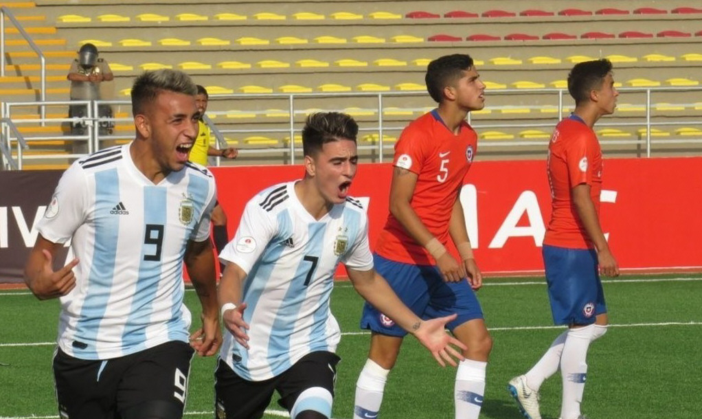 Grito de gol. Es el que dan los dos jugadores argentinos mientras sus pares chilenos lo sufren. El equipo de Pablo Aimar le quitó el invicto a los trasandinos y está a un paso de meterse en el Mundial de la categoría.