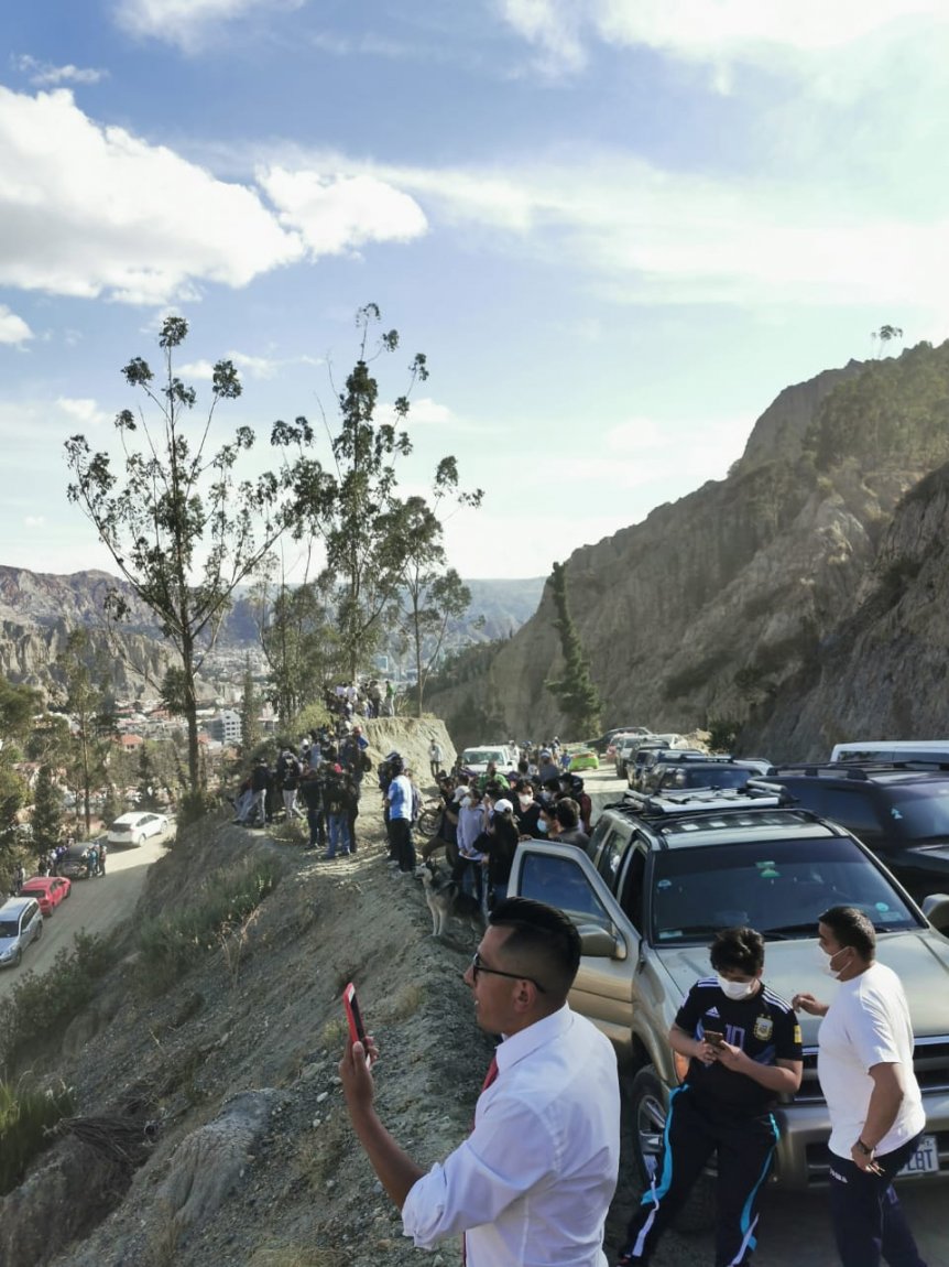 Más allá del drone que voló sobre el campo de The Strongest, muchas personas se acercaron hasta los montes próximos al entrenamiento para ver en acción a Lionel Messi y el resto de los integrantes del seleccionado nacional.