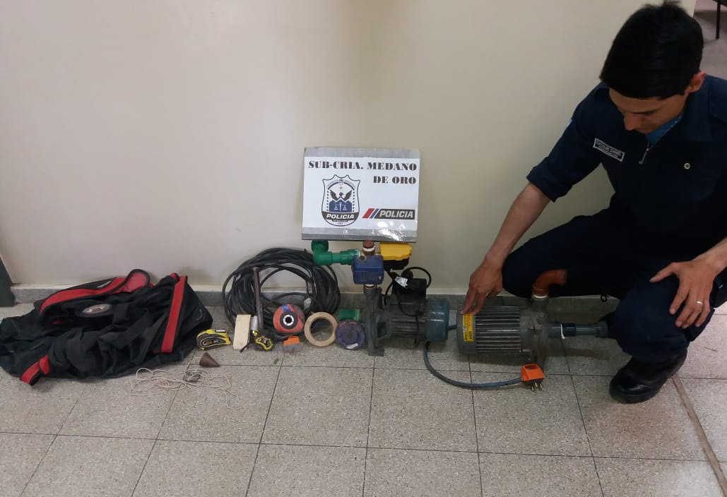 Policías de la subcomisaría Médano de Oro, a cargo del subcomisario Julio Aballay, recuperaron varios elementos que un sujeto había robado de una casaquinta ubicada en la calle Ramón Franco, entre 4 y 5, en Rawson. El ladrón arrojó el botín en un descampado y huyó, dijeron fuentes policiales.