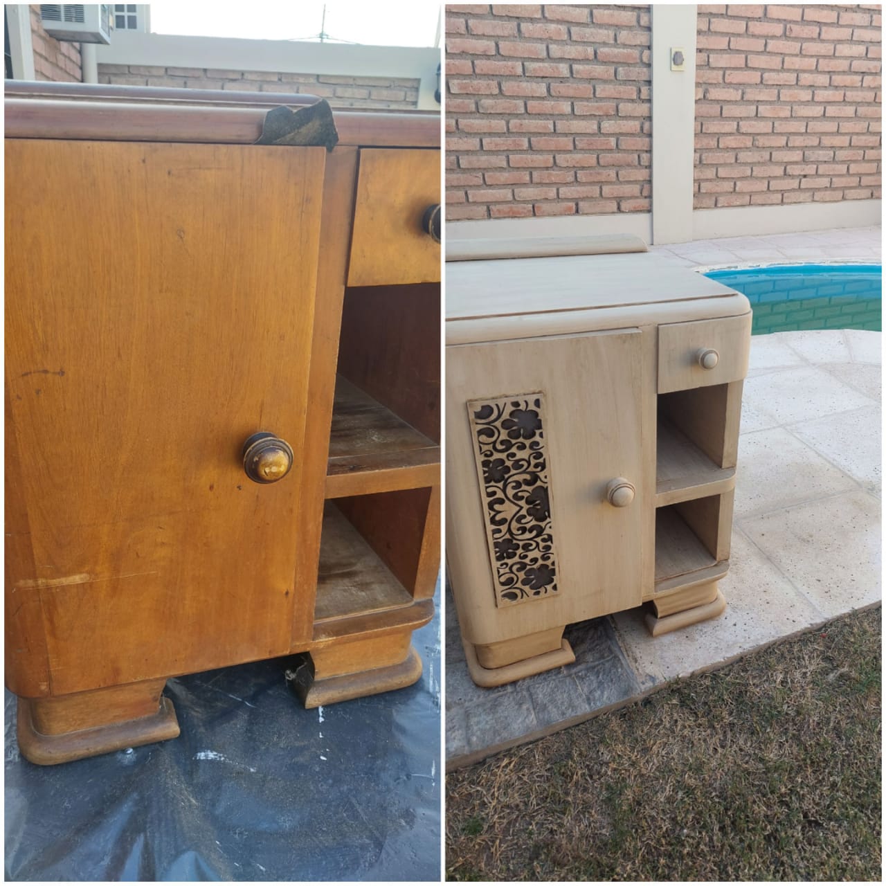 Me encanta y amo encontrar una pieza que alguien la iba a desechar, o que estaba muy cansada de verla o que estaba pasada de moda o deteriorada y poner mi creación para transformarla y lograr algo que no tiene nada que ver con el mueble original. Como amo el arte hago varios rubros, de repente reciclo pantallas de lámparas, pinto cuadros, entro dentro del mundo de la ambientación y también asesoro. Pero volviendo a mi tarea, muchos se preguntan, ¿qué es intervenir un mueble? Esto es modernizarlo bien sea respetando el estilo original o cambiarlo, según sea lo que el cliente pide. En pocas palabras es cambiarle la cara y darle otra oportunidad. Cuando llega a mis manos se toma el mueble y se ve en el estado en que se encuentra, inicialmente se hacen los arreglos estructurales de carpintería y luego se pasa a intervenirlo.