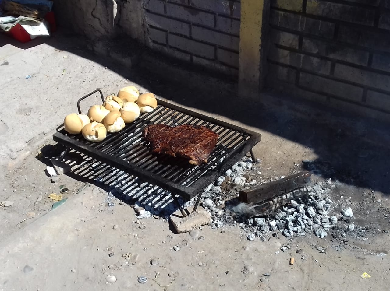 Muchos grupos de amigos eligieron almorzar en la vereda, pero no por eso se privaron del asadito del domingo.
