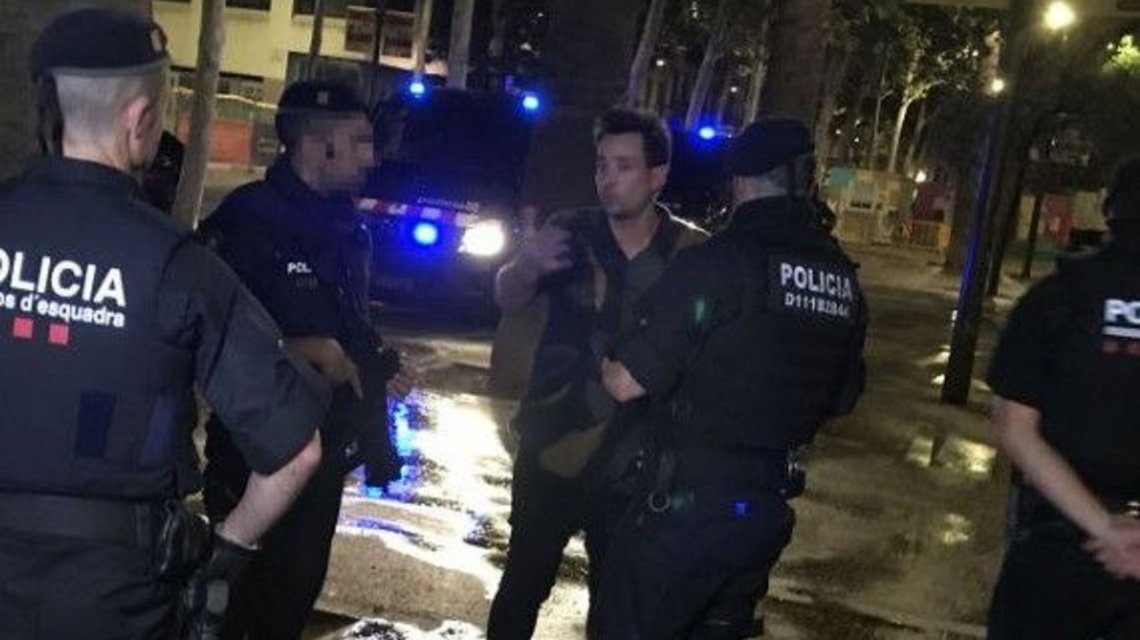 La policía acudió al lugar y tomó declaración del cantante. El momento fue capturado por un periodista argentino que vive en Bracelona.