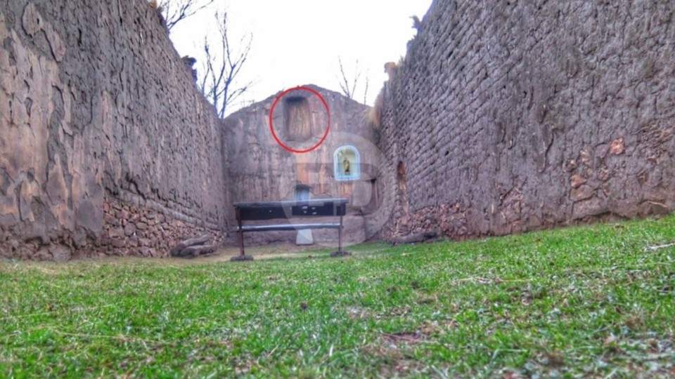 Cuando llegaron -explicó- vieron las paredes gruesas, el césped muy verde, corto, acolchado al caminar, hasta que llegaron a lo que parecía un altar y tres capillas. “Allí mi esposa me avisa que veía la imagen de la Virgen en la pared. Yo decidí sacar una foto. En el auto quedaba el resto de la familia por lo que la visita fue fugaz. Asombrados volvimos al auto y sin hacer muchos comentarios emprendimos el regreso”.