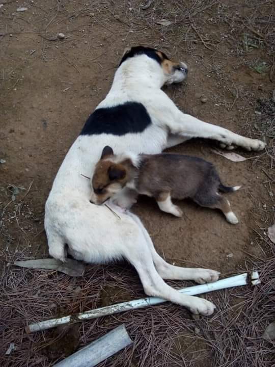Una imagen que revuelve el estómago y humedece los ojos es la de una perra que murió envenenada mientras amamantaba a su cachorro. Fue publicada hace dos días en la cuenta de Facebook de una de las asociaciones proteccionistas. Tanto la hembra como su cría murieron dolorasamente, luego de un lapso de convulsiones y agonías.