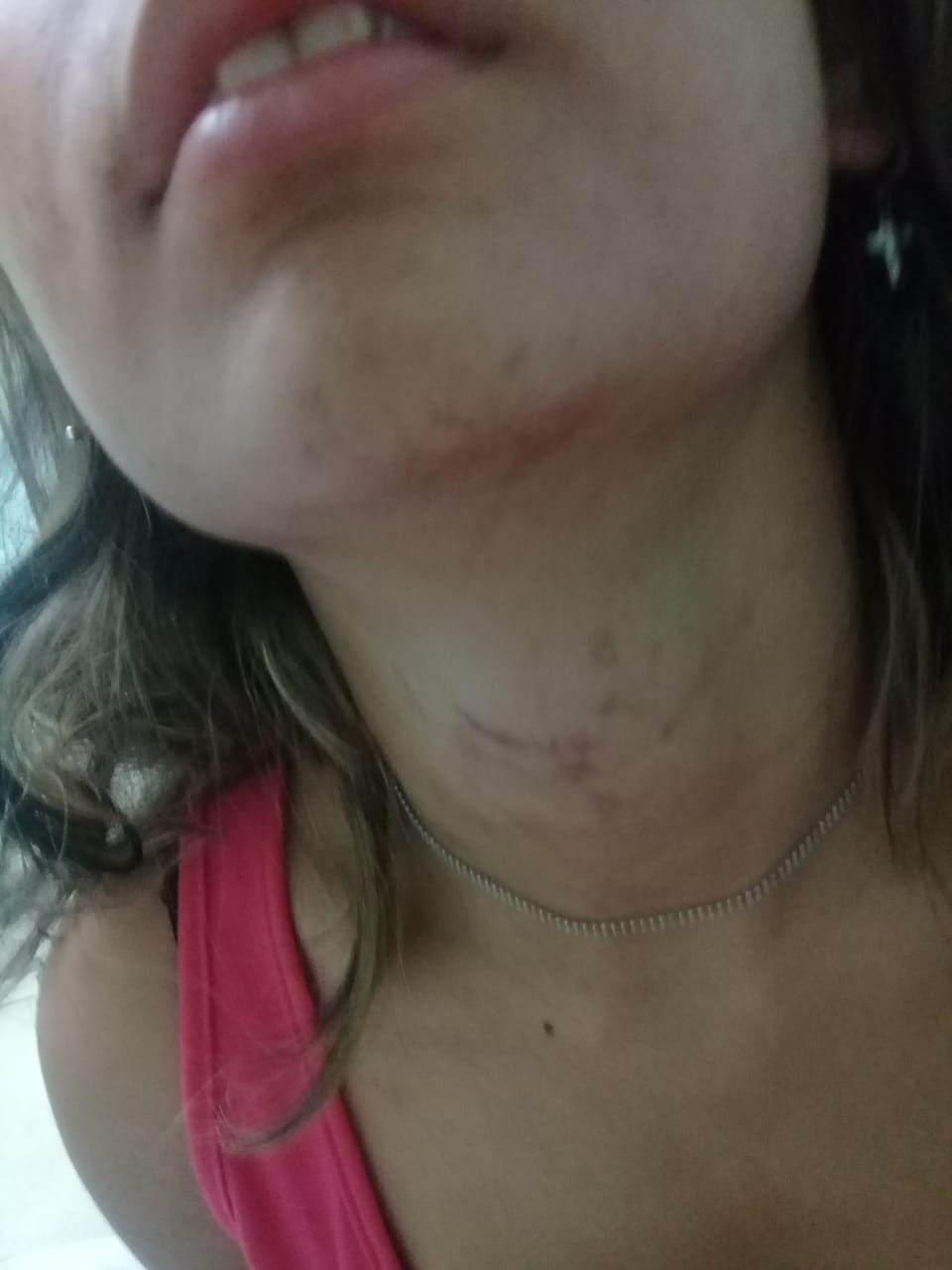 Y el nivel de violencia escaló: "Me agarró del cuello hasta desmayarme", apuntó la joven. Cree que se despertó unas dos horas después, caminó como pudo a su casa y le contó lo sucedido a su mamá. Cuando se miró al espejo, se dio cuenta que una vez en el piso la había golpeado en el rostro y el resto del cuerpo.