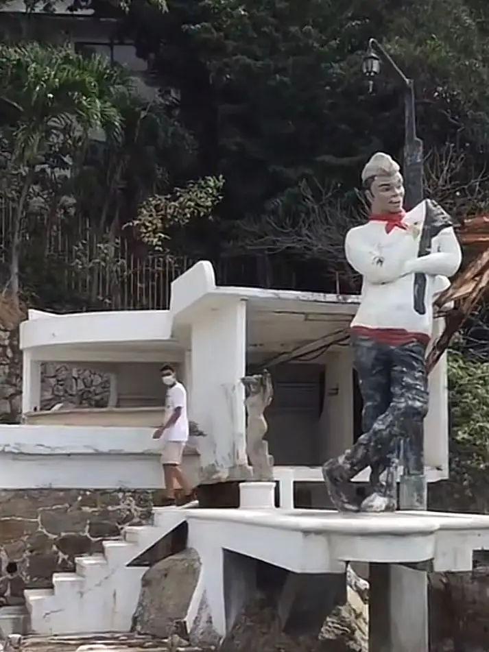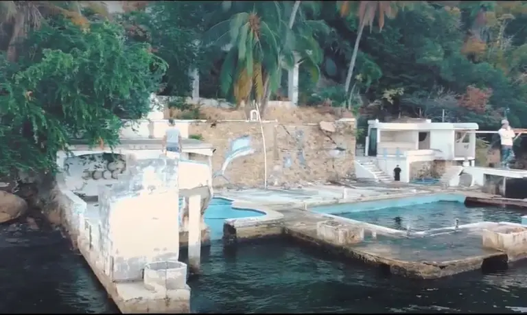 Parte de la estructura frontal se derrumbó, lo poco que se logra apreciar que queda en pie es una especie de base, un par de paredes adornadas con los últimos indicios de unos dibujos y la estructura de la piscina. Todo eso, rodeado por las grandes palmeras que caracterizan a Acapulco.