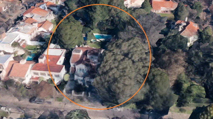 Posee un parque de 300 metros cuadrados, que tiene pileta y jacuzzi incluidos, y una edificación aparte con vestuarios, baño, sala de máquinas y una habitación de inspiración para relajación de Juanita.