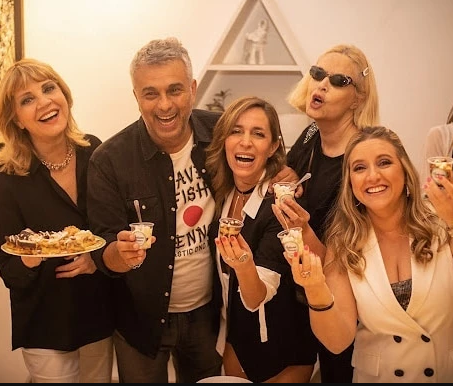 Otra de las fotos en donde se puede ver que luce espléndidas la publicó el periodista Mario Massaccesi en Instagram en donde está acompañado por la modelo, por Teté Coustarot, Sandra Borghi y Paula Bernini.