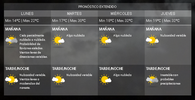 Para el martes, la máxima ascenderá hasta los 30ºC mientras que subirá hasta los 32ºC, miércoles y jueves.