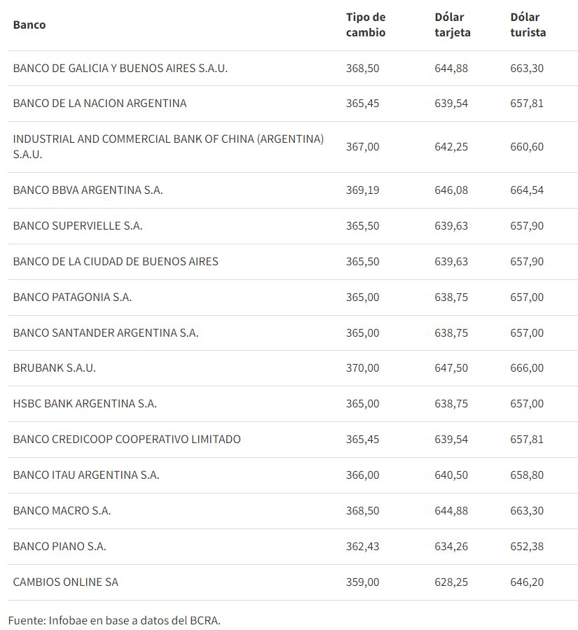 El dólar tarjeta, en tanto –que se usa para consumos de menos de 300 dólares– pasó a valer unos 639 pesos y no se verá afectado por esta norma de la AFIP.