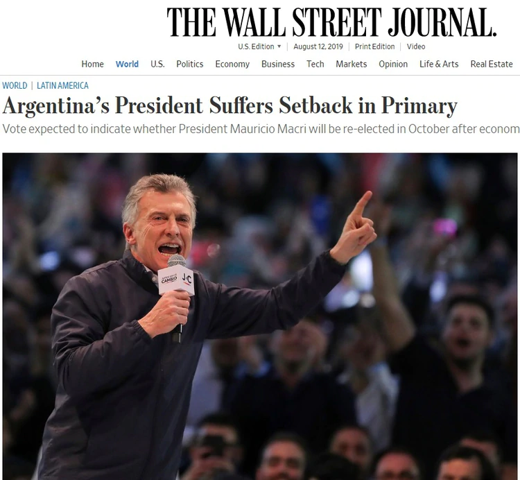 "El presidente proempresarial argentino, Mauricio Macri, sufrió un revés aplastante en las elecciones primarias del domingo, lo que indica que puede perder la reelección en las elecciones de octubre", comienza la nota del WSJ.