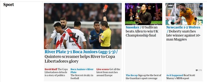 Así las cosas, la prensa extranjera reflejó a través de sus portales y redes sociales cómo vivieron la Superfinal entre River y Boca. Esto es lo que reflejaron: