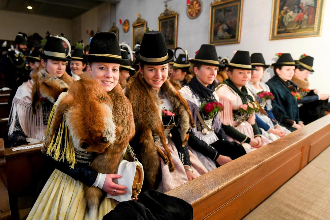 Mujeres vestidas tradicionalmente asisten a un acto conmemorativo sobre el llamado asesinato navideño de Sendlinger en Waakirchen, en el sur de Alemania, para conmemorar a las víctimas del levantamiento contra la ocupación de los Habsburgo en 1705, en el que asesinaron a más de 1.000 bávaros en la noche hasta el 25 de diciembre de 1705 ( Foto Tobias Hase/dpa vía AP).