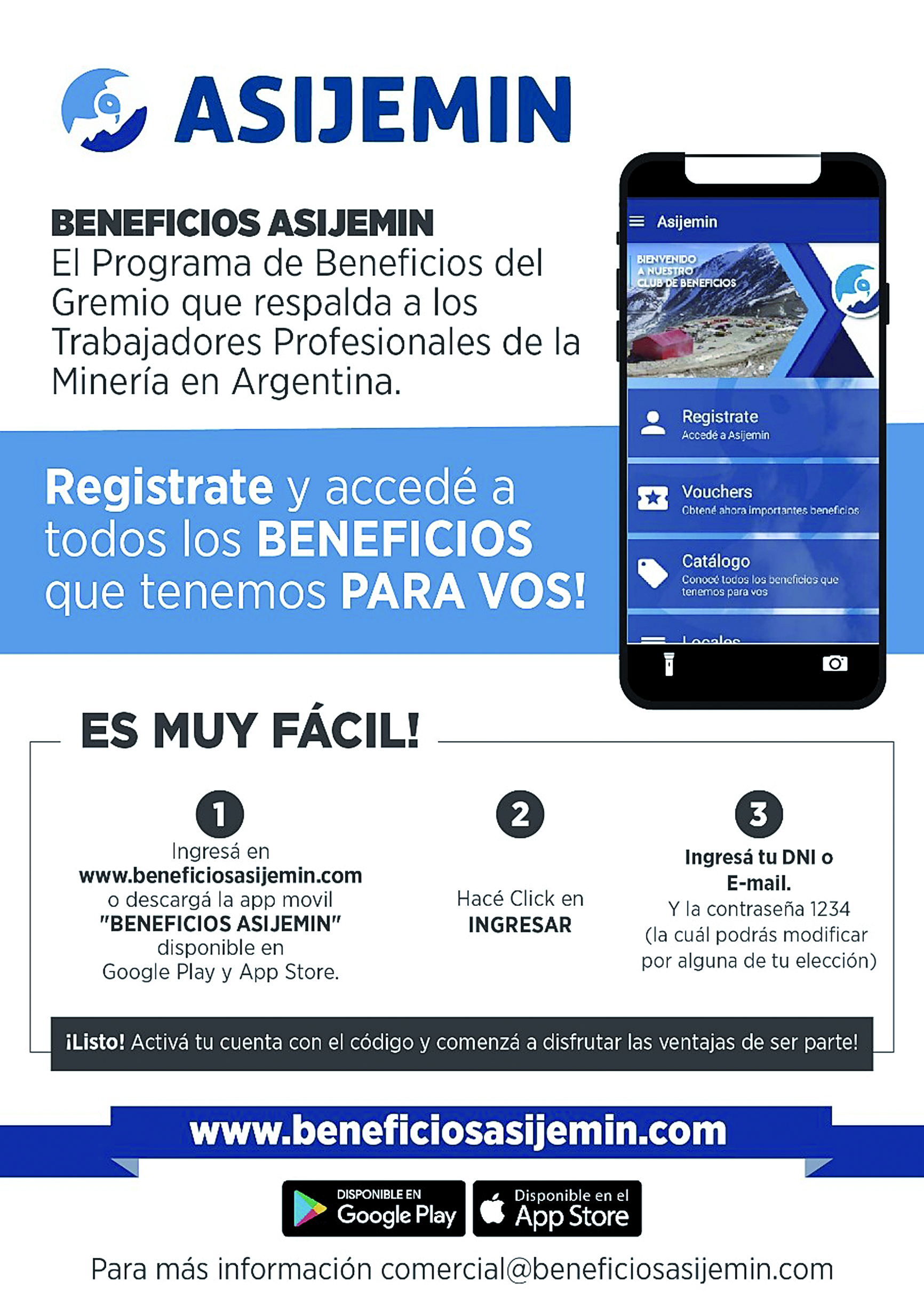 La Asociación Sindical del Personal, Jerárquico, Profesional y Técnico de la Actividad Minera Argentina (Asijemin), estableció un convenio de acción social para los trabajadores mineros nucleados al gremio. Recientemente, la institución firmó un acuerdo para la creación de una plataforma de beneficios con el Club Preferencial, quien desarrollará y administrará dicha plataforma de beneficios y descuentos.