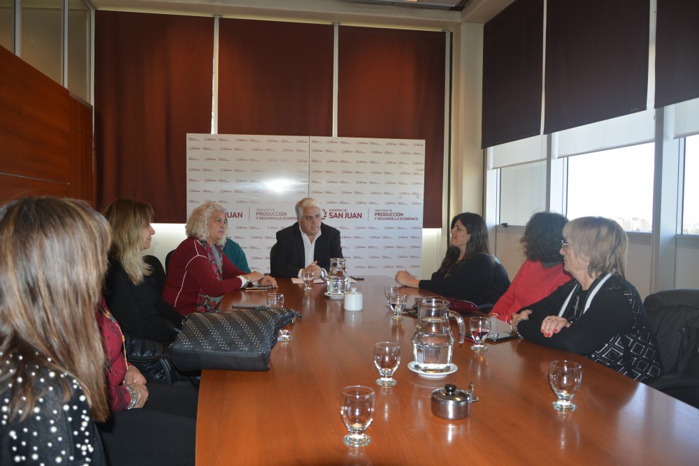El ministro de Producción y Desarrollo Económico, licenciado Andrés Díaz Cano, se reunió con las integrantes del grupo Mujeres Vitícolas del Este Sanjuanino, institución en vías de conformarse legalmente, que nuclea a productoras de diversos departamentos. El encuentro tuvo como objetivo presentarse y abordar diversas temáticas inherentes a este sector productivo.
