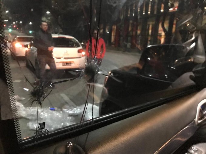 Ocurrió en Madero y Córdoba, en el barrio porteño de Retiro. “Creemos que son balazos”, expresó el conductor del auto en diálogo con crónica.com.ar y explicó que dos personas atacaron el vehículo y les “hicieron gestos” mientras se alejaban rápidamente.