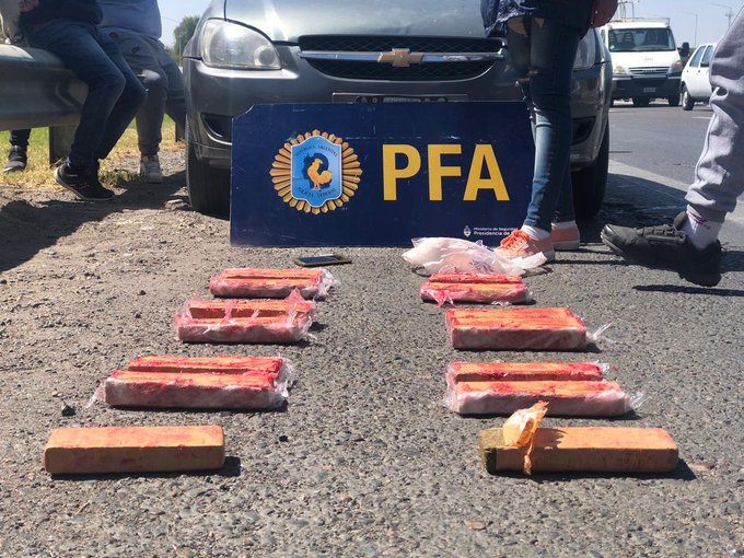 Según indicaron desde la Fuerza, los efectivos detuvieron el auto marca Chevrolet y descubrieron que en su interior había 14 kilos de marihuana y dosis de cocaína (no especificaron cuántas).