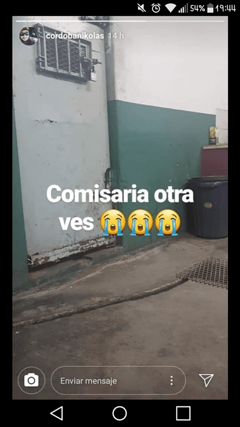 El acusado, frenó luego del episodio y luego se dirigió a la comisaría de la zona y quedó demorado. En ese lugar permaneció sólo media hora, y luego fue liberado. Sin embargo, en la misma seccional, el sujeto tuvo tiempo para postear una historia efímera en Instagram, en la que se burlaba de su propia situación: "otra vez en la comisaría", subió en tono jocoso y retrató la puerta del calabozo. Horas después, eliminó el propio perfil en la red social.