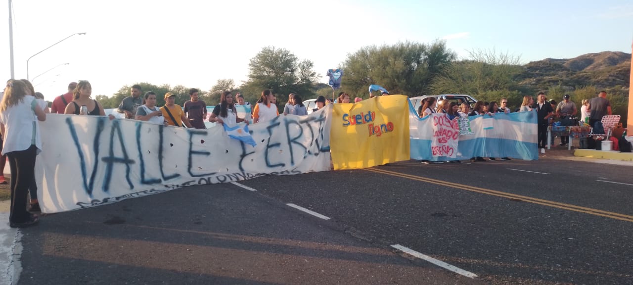 Desde las 6 de la mañana de este lunes el ingreso a la Villa San Agustín, en Valle Fértil, se encuentra cortado por completo por una protesta de los docentes autoconvocados del departamento.