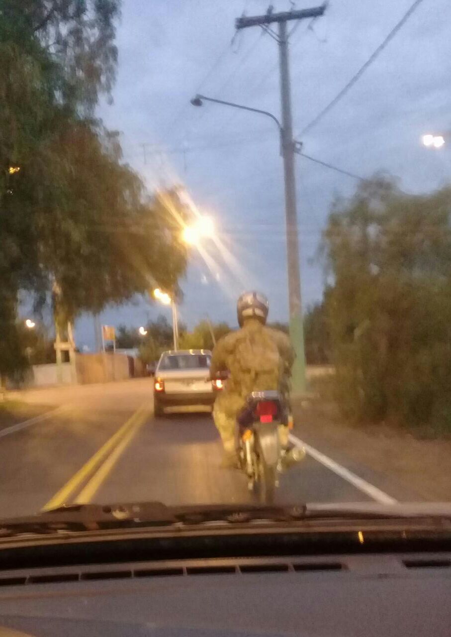 Un lector envió imágenes de una mujer que vestía el uniforme del DIM 22 conduciendo una moto sin patente y sin chaleco.
