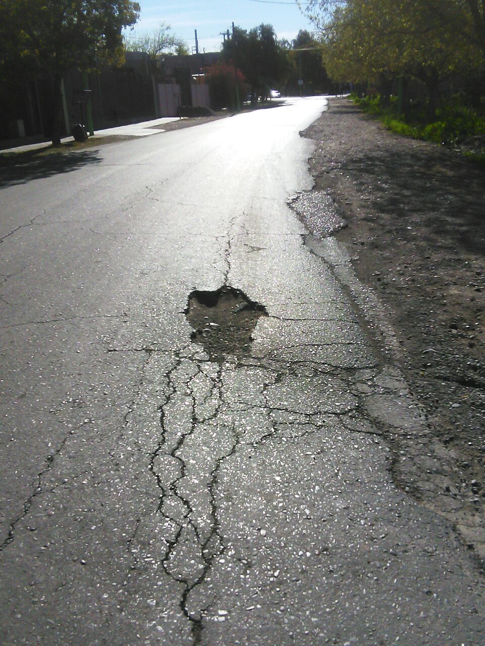 Un lector envió una imagen y el siguiente comentario: "Este bache está sobre calle Paula Albarracín antes de llegar al barrio Aramburu. Que alguien lo arregle, porque quienes viajamos en moto vamos a tener un accidente!!!".