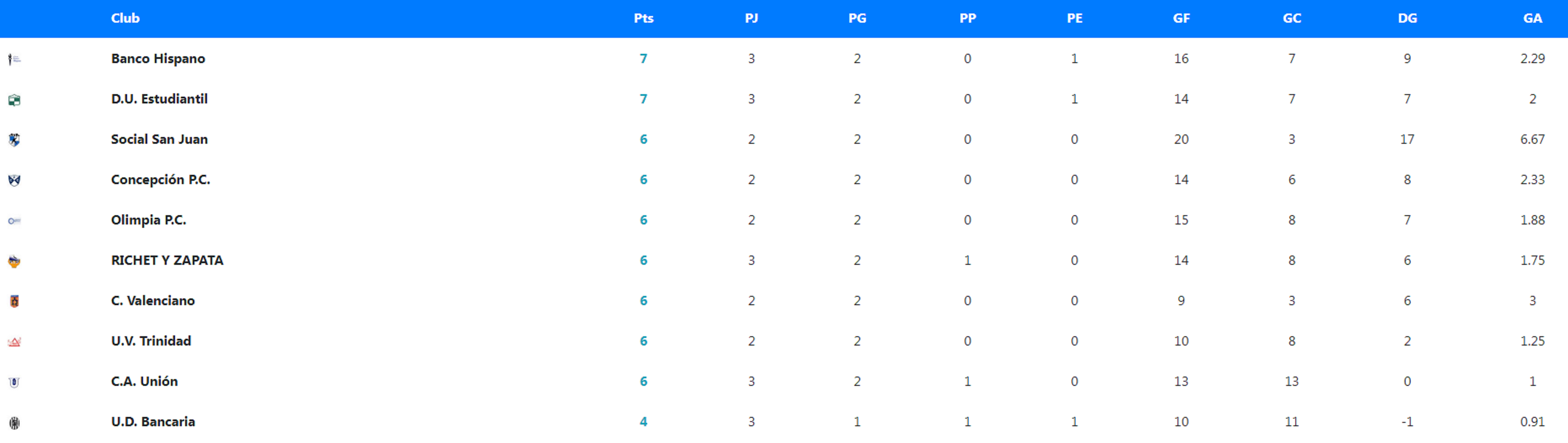 Por un lado, Banco Hispano igualó 3-3 con Bancaria, conservó el invicto y se mantuvo arriba al menos hasta mañana que se complete la fecha, mientras que Estudiantil venció ajustadamente 2-1 al Sindicato Empleados de Comercio y también se subió a lo más alto.