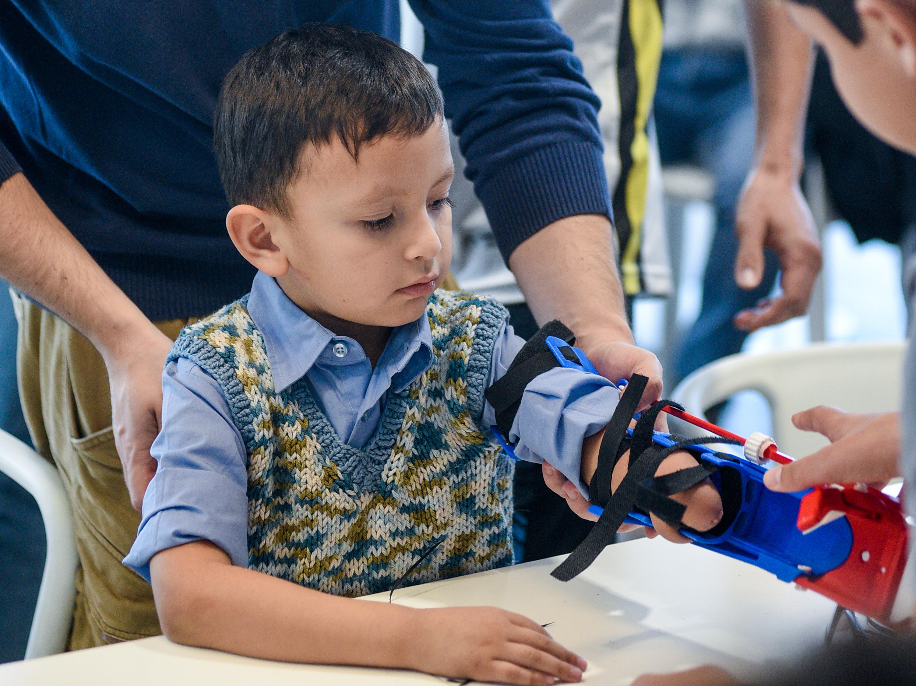 Colaboradores de Banco Macro junto a Gino Tubaro llevaron adelante una Jornada de Voluntariado donde se construyeron 20 prótesis mecánicas impresas en 3D que fueron entregadas en forma gratuita a chicos que las estaban esperando.