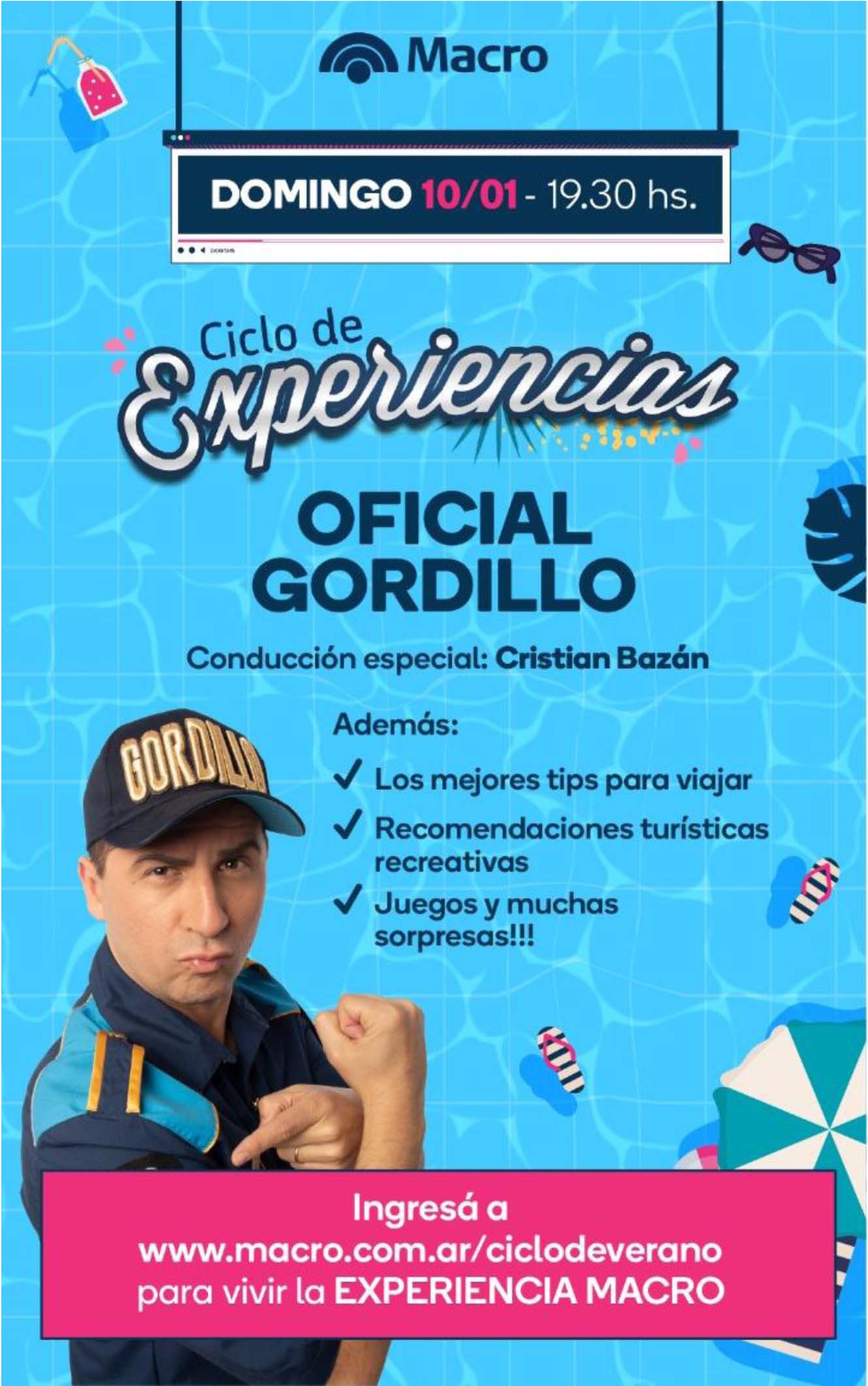 Con estas Experiencias Macro tenés la posibilidad de participar del show del Oficial Gordillo, Piñón Fijo, el mejor Trap argentino y conocer todos los secretos de la cocina y la coctelería. El humor y la magia serán de la partida como así también la vida saludable y la reflexión.