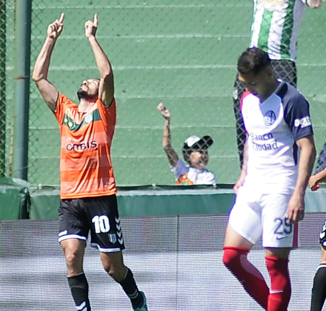 Contracara. Dátolo celebra su gol y lo sufre todo San Lorenzo.