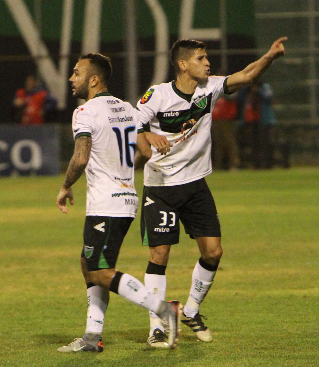 Para vos. Facundo Barcelo le grita su gol a la platea luego de celebrarlo con Maxi Lugo.