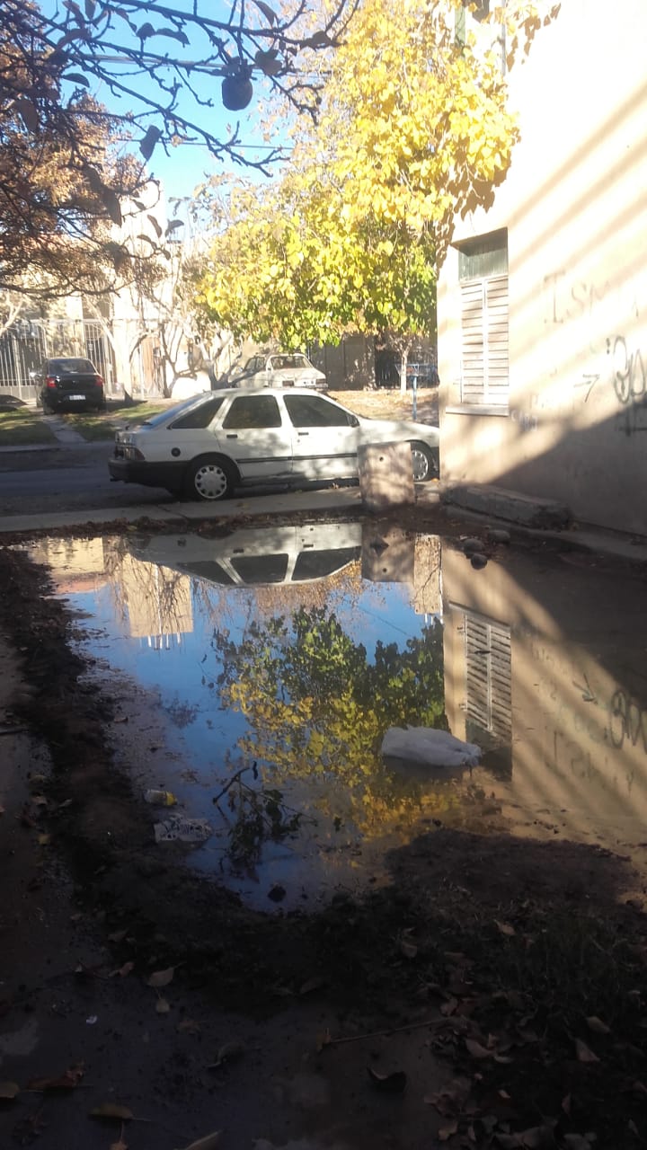Los vecinos del monoblock 11 del Barrio Hualilán Sur, en Rawson, afirman que desde hace tiempo no pueden abrir las ventanas de sus casas o dejar a los niños jugar fuera por la gran cantidad de aguas servidas que hay en los jardines y ya llega a la calle.