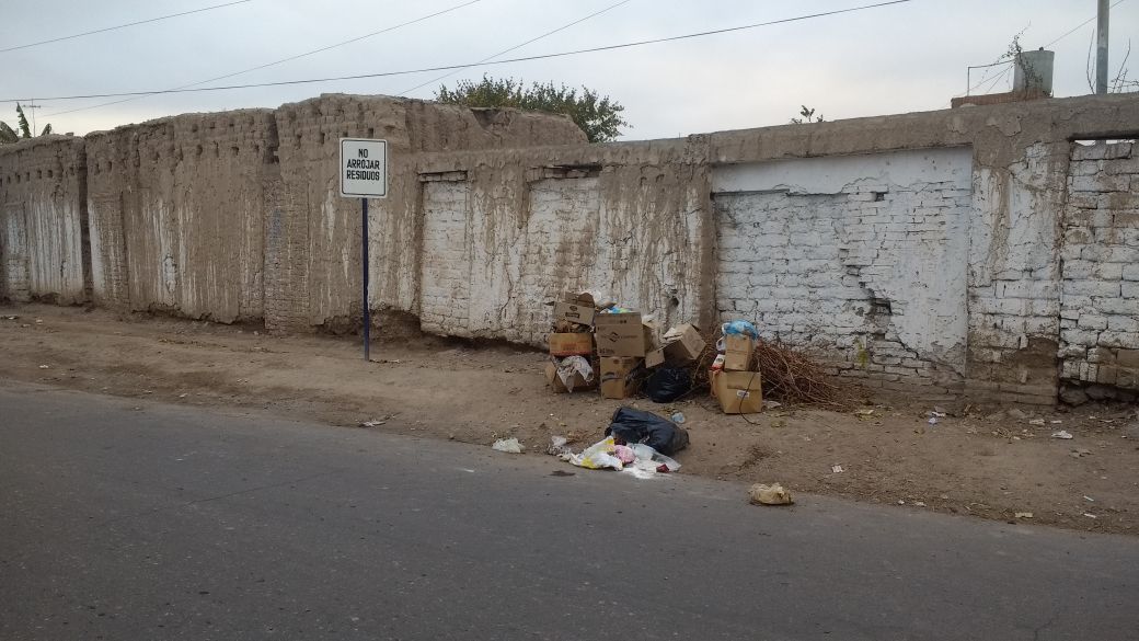 Un lector envió una imagen y el siguiente comentario: "Est sucede en calle Santo Domingo y Maipú, en Capital. Se ven bolsas rotas por los perros que buscan comida y dichos perros tienden a llevar la basura para comerla a las entradas de las casas. Lo más curioso es que pareciera que lo hacen a propósito y lo ponen debajo del cartel que indica no arrojar!".