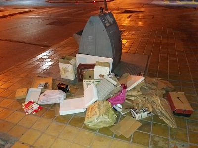 Un lector envió una imagen y el siguiente comentario: “En avenida Alem esquina Ig de la Roza alguna persona deja que su basura vaya caminando sola hasta el contenedor y se deposite sola”.
