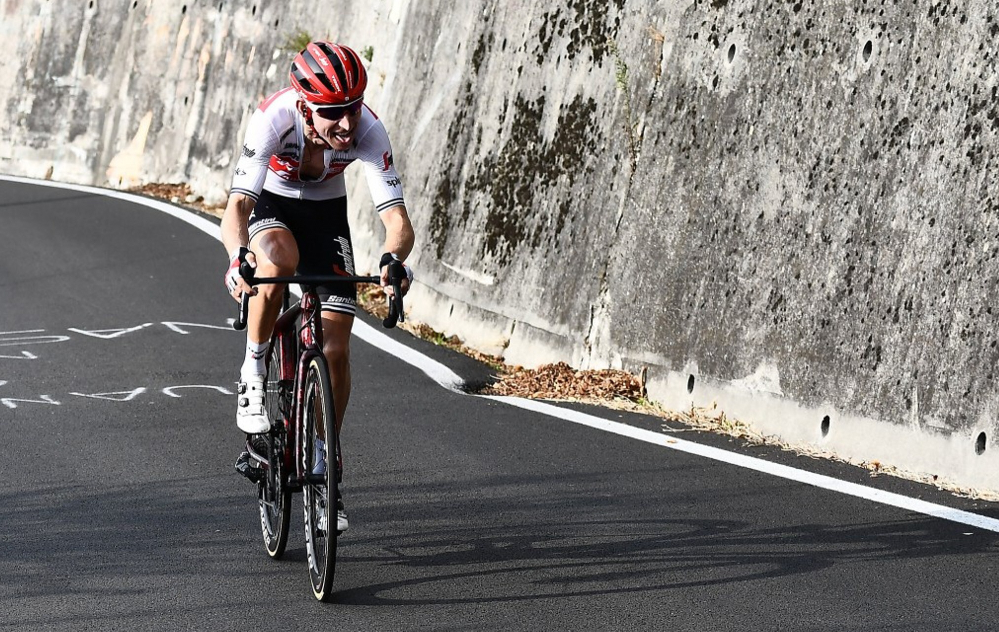 Lo dejaron hacer y cuando reaccionaron Valverde y Bernal ya era tarde. Mollema tuvo tiempo de subir el cierre de su malla y celebrar su primer monumento.