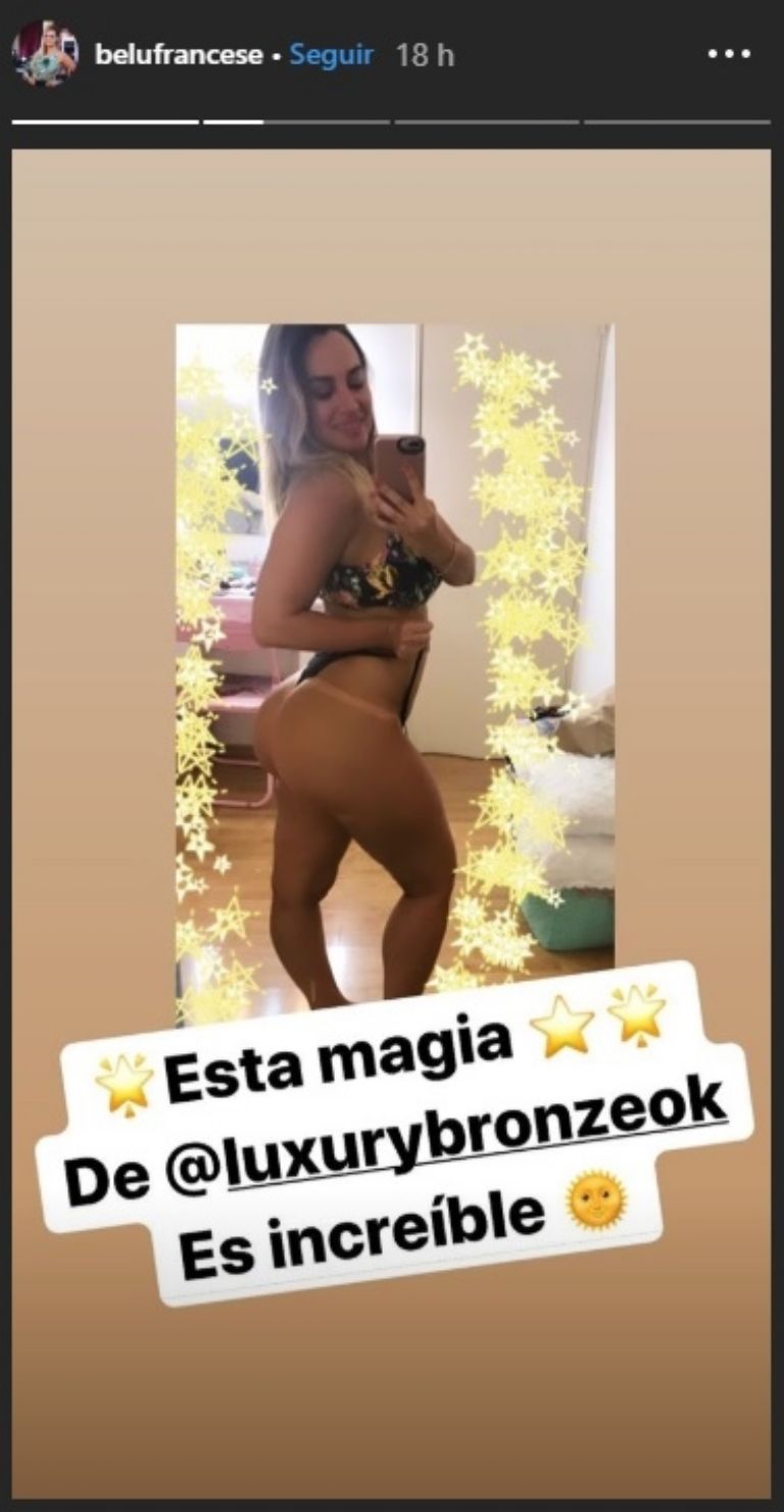 Tal como lo hizo hace algunas horas, que desató la locura de miles cuando colgó en sus stories una fotografía donde posa de perfil con un traje de baño, levantando su prenda de abajo para enseñar las marcas que le quedaron de la cama solar, promocionando los servicios de luxurybronze.