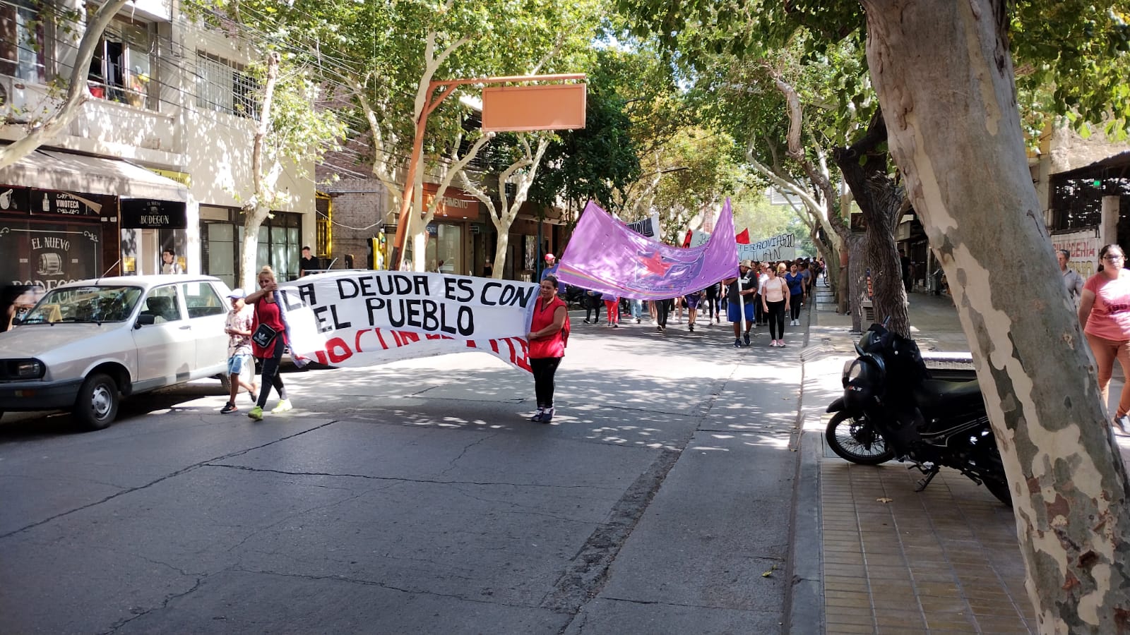 En las banderas que cargaron se pudieron leer mensajes como: "La deuda es con el pueblo y no con el FMI". Además de los nombres de las organizaciones entre las que figuraron el Frente Organización en Lucha y barrio Ferroviario, Frente de Organizaciones en Lucha.
