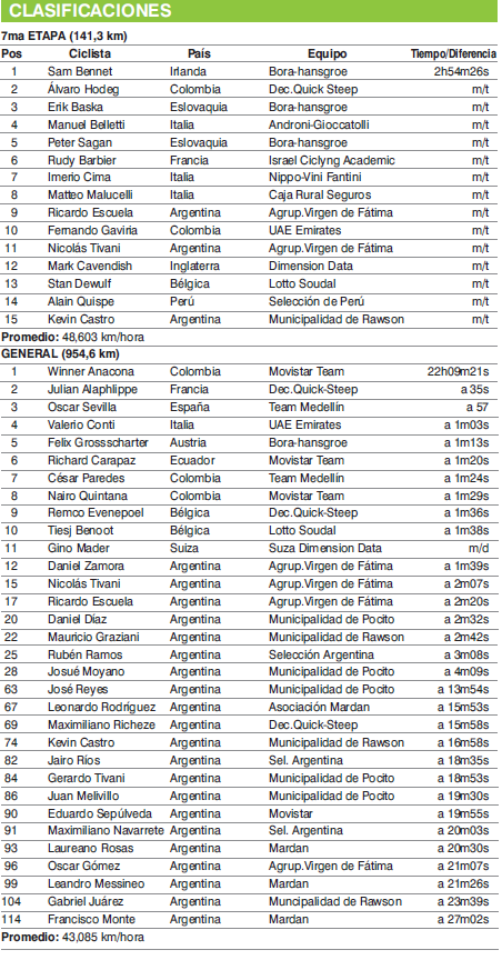 Ante ese entusiasta marco el pelotón rodó a más de 48 kilómetros horarios, un promedio muy superior a la media que suelen tener las carreras que se corren en Europa. Y la dominaron ampliamente los conjuntos del viejo continente. Triunfó el irlandés Sam Bennett en 2h54m26s.