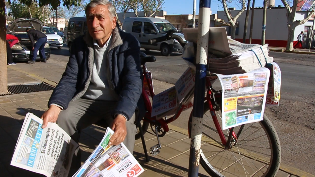 Tiene 71 años y desde los 15 años aprendió el oficio de vender diarios. No era muy simpatizante de ir a la escuela y en aquella época no había elección; si no terminaba sus estudios, debía salir a trabajar. Su papá Américo Jofré le heredó el oficio y hace 56 años que con pasión reparte los periódicos de distintos medios sanjuaninos.
