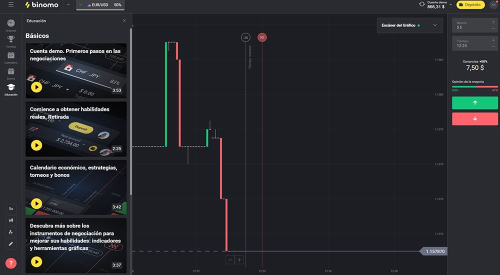 Cabe señalar que las inversiones con activos financieros son bastante riesgosas, por lo que te recomendamos tener los conocimientos necesarios para comenzar. Practica lo suficiente en la cuenta demo Binomo hasta tener una suficiente experiencia y conocimiento.