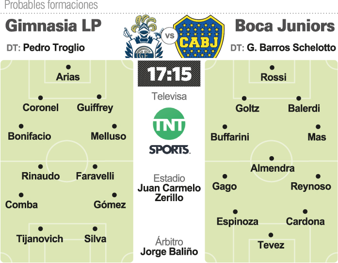 Jorge Baliño. El Xeneize tiene 15 puntos, cinco menos que el líder Racing (20), viene de igualar sin goles como local frente a Rosario Central, mientras que Gimnasia suma 11 unidades y en la fecha pasada perdió con Vélez (1-0) en Liniers.
