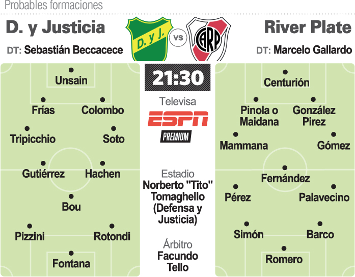 Mientras que River, con varias bajas, visitará hoy a Defensa y Justicia (21.30 por ESPN Premium), en lo que marcará el inicio de la Liga Profesional de Fútbol para ambos.