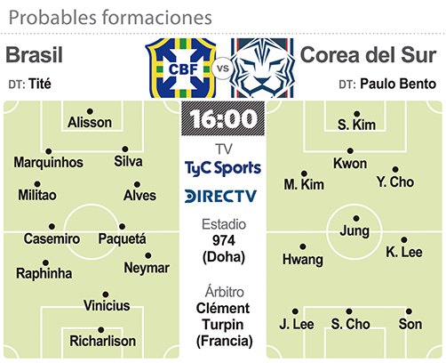 El seleccionado de Brasil, uno de los firmes candidatos a pelear por el título mundial, enfrentará hoy (desde las 16, hora argentina) a Corea del Sur en busca de un lugar en los cuartos de final de la Copa del Mundo de Qatar 2022. El vencedor de esta llave se enfrentará en cuartos de final al ganador del cruce entre Japón y Croacia.