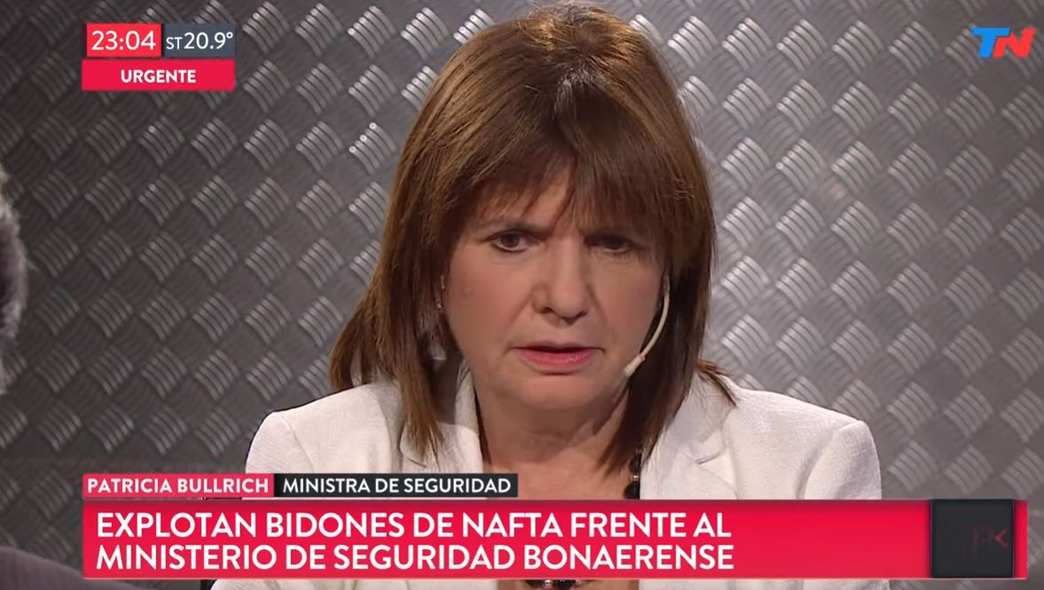 Respecto a los coches incendiados este jueves por la noche en la ciudad de La Plata enfrente al Ministerio de Seguridad provincial, Bullrich sostuvo que "dar una lucha fuerte contra las mafias y el narcotráfico implica una serie de hechos que suceden como amenazas a la Gobernadora Vidal y los ataque al Presidente. El clima de un Gobierno que se afianza genera como respuesta estos hechos alentados".
