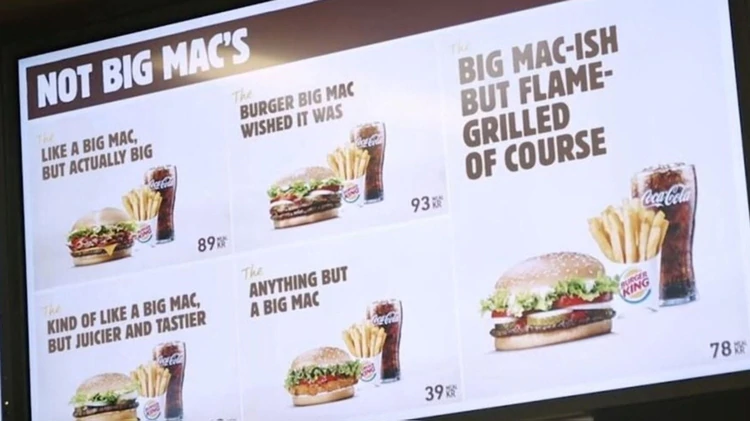 "Como un Big Mac, pero realmente grande"; "La hamburguesa que el Big Mac desearía haber sido"; "Como un Big Mac, pero más jugosa y más sabrosa" y "Cualquier cosa excepto un Big Mac". Estas fueron algunas de las frases que utilizó Burger King en los afiches que empapelaron sus locales de comida rápida en Europa.