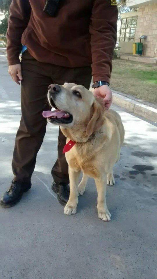 Aparentemente estuvo en el Hospital Marcial Quiroga, pero alguien se lo llevó. Tiene un collar rojo.