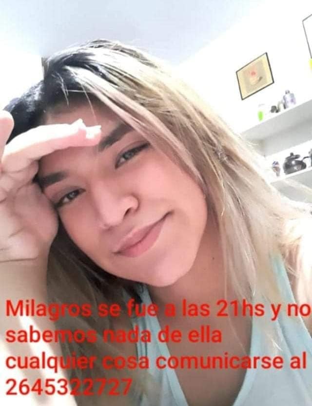 Según las fuentes, se trata de Brisa Milagros Fernández, que se fue de su hogar, ubicado en calle Cuesta del Viento, barrio El Salvador Norte, en Pocito.