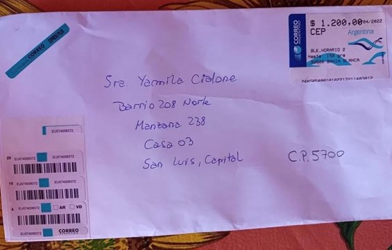 "Ayer 14, por el jueves, recibí de nuevo otra carta por correo Argentino, es la tercera que llega a mi domicilio. Dicha carta viene desde bahía Blanca. La cual menciona una dirección de Anchorena, San Luis", comenzó en su cuenta de Facebook.