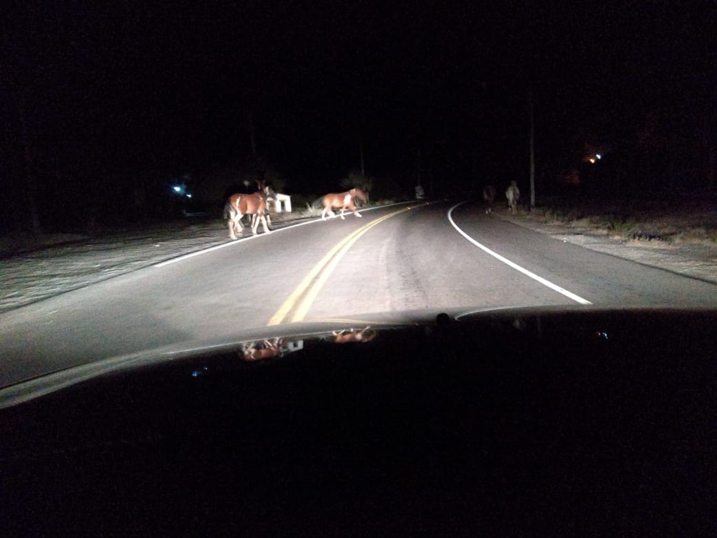 Un lector envió una imagen y el siguiente comentario: "Esto fue alrededor de las 2 de este lunes. Caballos sueltos camino a la Ruta Interlagos. Un peligro".