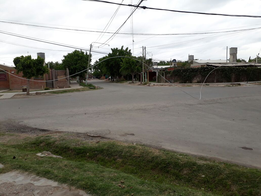 Un lector envió una imagen y el siguiente comentario: "Estos cables tirados son un peligro. Es en el barrio Enoe Bravo, en Caucete".